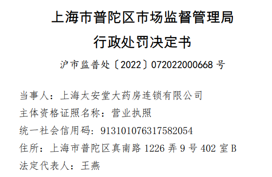 案發(fā)后,上海太安堂大藥房連鎖有限公司對上述產(chǎn)品進(jìn)行了下架,關(guān)閉了上述網(wǎng)店。