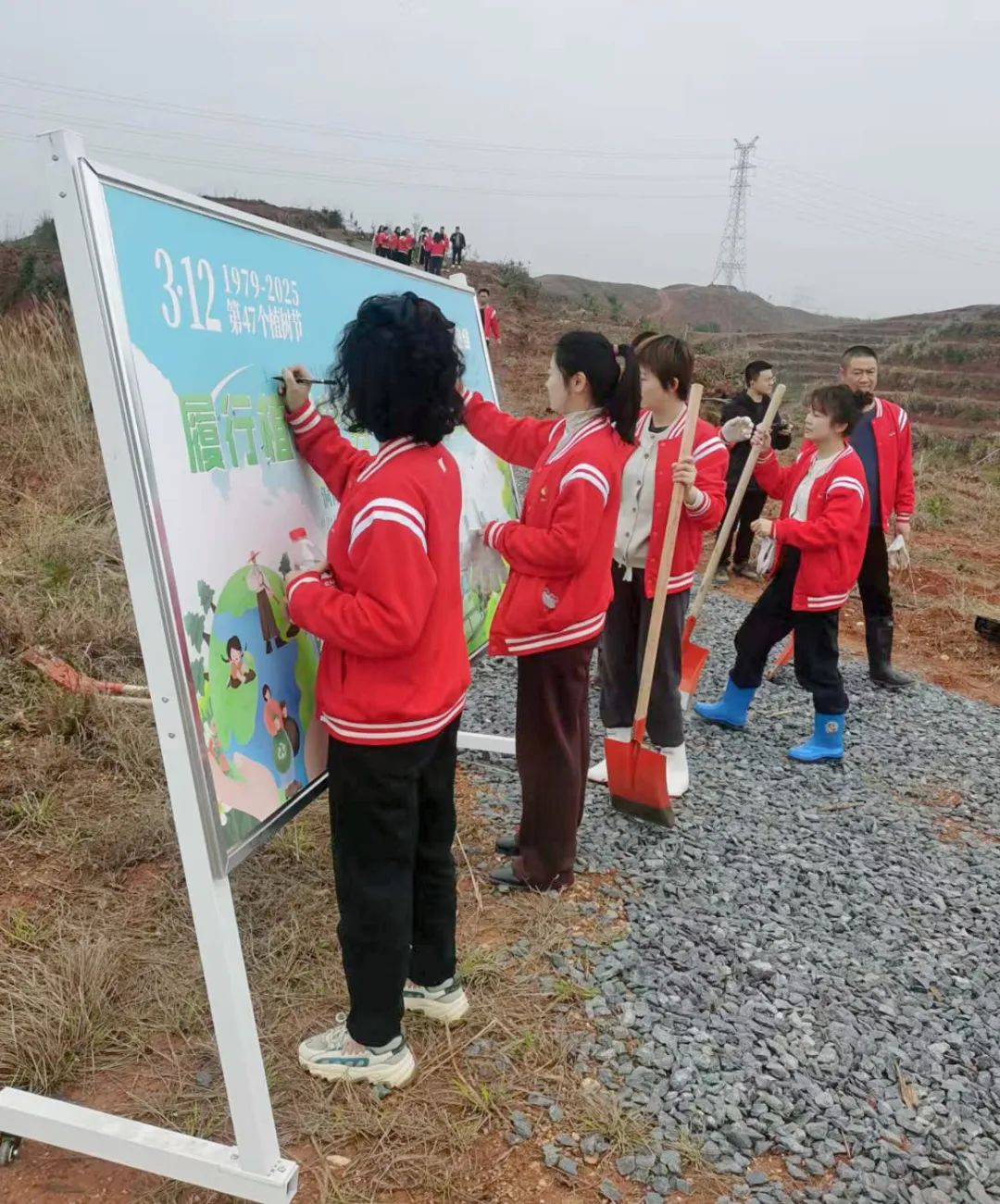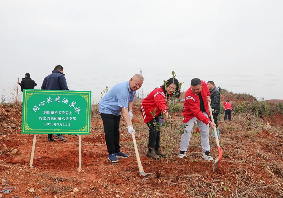 綠之韻集團(tuán)黨委書記劉云,綠之韻集團(tuán)第六黨支部書記、常務(wù)副總裁胡均安,黨委副書記許達(dá)仲、工會(huì)主席馮紅等領(lǐng)導(dǎo)帶領(lǐng)各黨支部書記、黨員代表、入黨積極分子齊聚洞陽(yáng)鎮(zhèn)義務(wù)植樹基地,以實(shí)際行動(dòng)為地球增添一抹綠色,助力生態(tài)文明建設(shè)。
