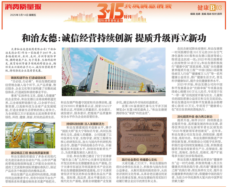 中國(guó)消費(fèi)者報(bào)3·15特刊——和治友德:推進(jìn)企業(yè)高質(zhì)量發(fā)展 提質(zhì)升級(jí)徜徉2025 ...