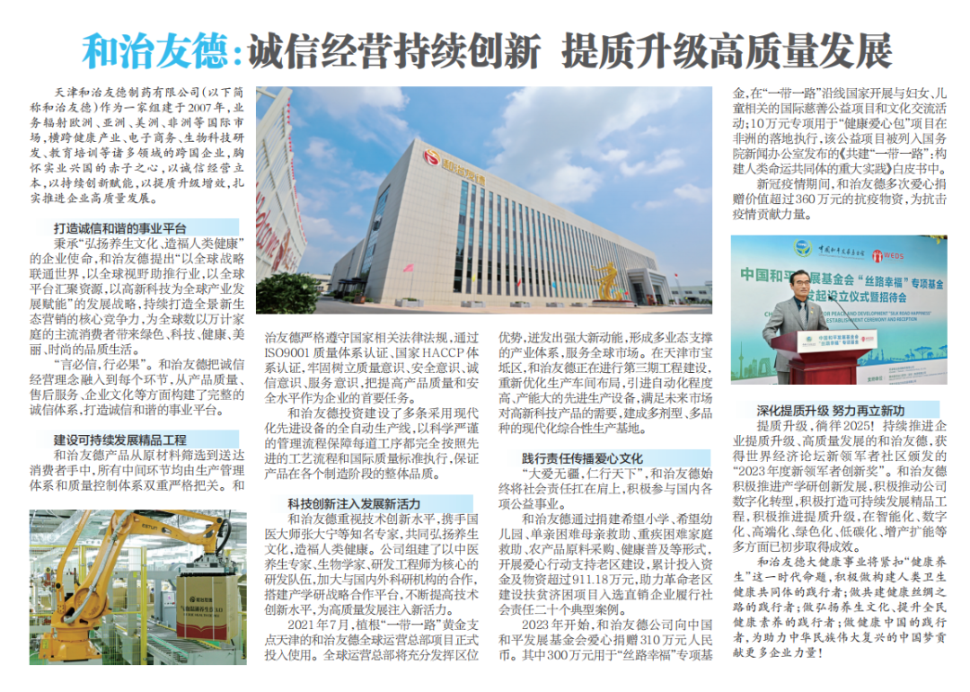 中國消費者報3·15特刊——和治友德:推進企業(yè)高質量發(fā)展 提質升級徜徉2025 ...