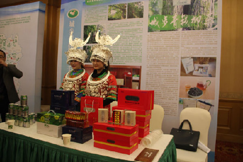 為城步青錢柳茶作推介的漂亮苗族姑娘,成為會(huì)場(chǎng)一道靚麗的風(fēng)景。 記者 王融國(guó) 攝