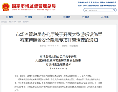 中國質(zhì)量新聞網(wǎng)訊 ?8月21日,國家市場(chǎng)監(jiān)管總局官網(wǎng)發(fā)布《市場(chǎng)監(jiān)管總局辦公廳關(guān)于開展大型游樂設(shè)施乘客束縛裝置安全隱患專項(xiàng)排查治理的通知》,提出三大工作措施:提升大型游樂設(shè)施乘客束縛裝置的有效性;強(qiáng)化大型游樂設(shè)施運(yùn)行安全管理;加強(qiáng)大型游樂設(shè)施安全宣傳教育。