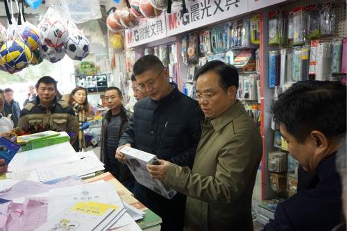 接著,檢查組來(lái)到學(xué)校對(duì)面的經(jīng)銷門店,檢查了學(xué)生文具、兒童玩具質(zhì)量情況,察看了門店的進(jìn)貨記錄,檢查了產(chǎn)品標(biāo)識(shí)情況,詢問(wèn)了稽查部門對(duì)文具、玩具產(chǎn)品的管理情況,再三叮囑門店負(fù)責(zé)人,一定要把好進(jìn)貨關(guān),銷售正規(guī)廠家生產(chǎn)的標(biāo)識(shí)齊全的產(chǎn)品,不得銷售“三無(wú)”文具、無(wú)CCC標(biāo)識(shí)和具有危險(xiǎn)性的兒童玩具。