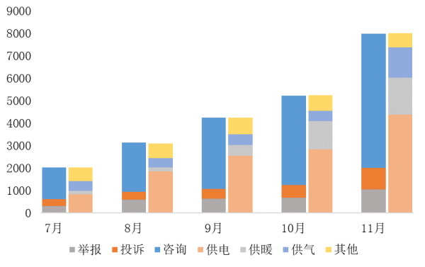 具體來(lái)看,供暖價(jià)格相關(guān)案件受理量為1647件,同比下降36.99%,環(huán)比增長(zhǎng)30.40%;電力價(jià)格相關(guān)案件總受理量4380件,同比增長(zhǎng)507.49%(投訴舉報(bào)主要關(guān)注的問(wèn)題為用電價(jià)格過(guò)高、未執(zhí)行降價(jià)政策、亂收費(fèi)、轉(zhuǎn)供電加價(jià)等),環(huán)比增長(zhǎng)54.44%;天然氣價(jià)格相關(guān)案件總受理量1347件,同比上漲11.78%,環(huán)比增長(zhǎng)295.49%。與去年同期相比,供暖價(jià)格相關(guān)案件受理量下降,電、氣價(jià)格問(wèn)題更受關(guān)注。?