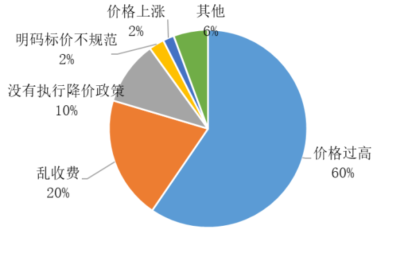 電力價(jià)格相關(guān)投訴舉報(bào)案件中,反映最多的是價(jià)格過(guò)高問(wèn)題,共359件,占59%;其次是亂收費(fèi)問(wèn)題,共121件,占20%;此外,還有未執(zhí)行降價(jià)政策、電費(fèi)明碼標(biāo)價(jià)不規(guī)范、用電價(jià)格私自上漲等問(wèn)題。