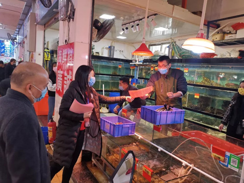 持續(xù)加強(qiáng)防控工作宣傳,做好疫情預(yù)防控制。 發(fā)送《廣東省市場(chǎng)監(jiān)督管理局關(guān)于做好食品經(jīng)營(yíng)環(huán)節(jié)預(yù)防新型冠狀病毒感染的肺炎疫情預(yù)防控制工作的通知》到市直餐飲微信群、發(fā)送《農(nóng)貿(mào)交易市場(chǎng)預(yù)防新型冠狀病毒感染的肺炎疫情預(yù)防控制指引》到汕尾市食品經(jīng)營(yíng)交流群。在檢查過程中,督促各經(jīng)營(yíng)主體認(rèn)真做好場(chǎng)所衛(wèi)生清潔消毒、做好員工體溫監(jiān)測(cè)登記。在檢查過程中,強(qiáng)化防控知識(shí)宣傳,向經(jīng)營(yíng)戶派發(fā)《農(nóng)貿(mào)交易市場(chǎng)預(yù)防新型冠狀病毒感染的肺炎疫情預(yù)防控制指引》150多份;發(fā)放了《致汕尾市民朋友的一封信》《關(guān)于減少和取消家庭聚集活動(dòng)的倡議》《汕尾市防控新型冠狀病毒感染的肺炎疫情工作領(lǐng)導(dǎo)小組辦公室公告》(第1號(hào)、第2號(hào))等宣傳資料,督促餐飲服務(wù)單位按疫情預(yù)防控制有關(guān)要求做好防控工作、落實(shí)防控措施。