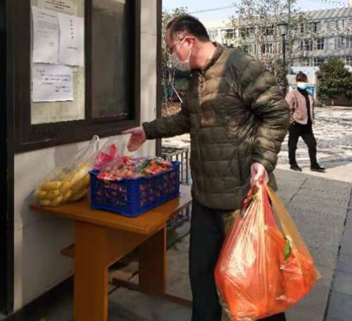 圖為農(nóng)發(fā)行江夏區(qū)支行辦公室工作人員給在家隔離的員工及家屬送日常藥品,水果,蔬菜等生活用品