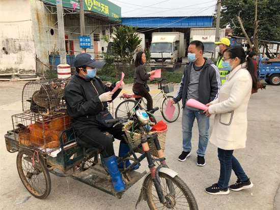 為最大限度降低內(nèi)部傳播風(fēng)險(xiǎn),駐村干部主動(dòng)開展轄區(qū)內(nèi)流動(dòng)攤販、周邊商鋪及餐飲單位巡查工作,嚴(yán)格落實(shí)禁止銷售野生動(dòng)物及活禽、禁止聚集性活動(dòng)的規(guī)定,逐檔檢查、逐戶宣傳,達(dá)成齊心防疫共識(shí)。1月30日上午,在發(fā)現(xiàn)村內(nèi)仍有2戶流動(dòng)攤販銷售活禽后,駐村干部立刻上前,向經(jīng)營(yíng)戶說明防疫工作措施要求,勸導(dǎo)其及時(shí)離開;宣傳引導(dǎo)村民取消喜慶聚餐6場(chǎng)次180圍,停止聚集性活動(dòng);勸導(dǎo)三圍綠雅農(nóng)場(chǎng)等重點(diǎn)場(chǎng)所關(guān)停戶外游戲設(shè)施,最大限度減少人員聚集。