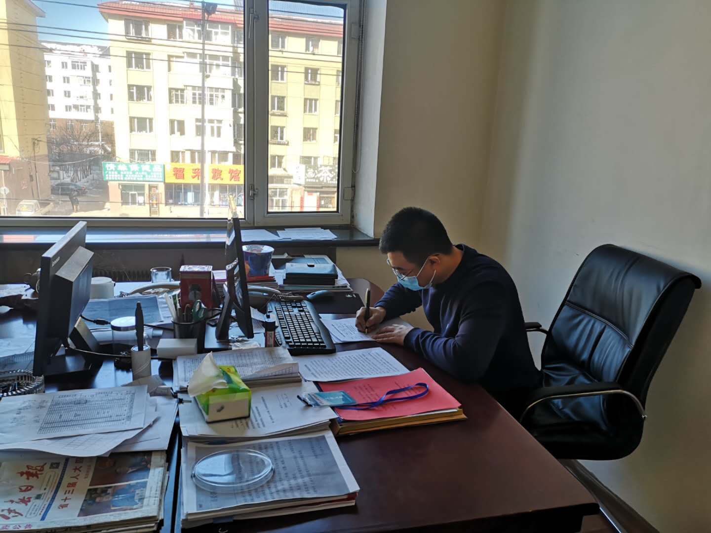 在這樣的一群人中,有一個(gè)忙碌的身影,他就是伊春市市場(chǎng)監(jiān)督管理局伊春分局辦公室主任李龍一,大年初一晚,接到返崗上班的電話后,他只身一人連夜從湯旺縣返回工作崗位。大年初二早,他立刻投入到疫情防控和維護(hù)市場(chǎng)秩序穩(wěn)定的工作中,組織召開疫情防控工作部署會(huì)議,制定《伊春市市場(chǎng)監(jiān)督管理局伊春分局關(guān)于防控新型冠狀病毒感染的肺炎疫情應(yīng)急響應(yīng)工作方案》,統(tǒng)計(jì)全區(qū)市場(chǎng)主體情況,細(xì)化工作任務(wù),為領(lǐng)導(dǎo)統(tǒng)籌決策提供精準(zhǔn)數(shù)據(jù)思路。他把孝心壓心底,將親情記心間,小愛融大愛。他用逆行而上的勇氣、用血肉之軀守護(hù)人民群眾的消費(fèi)安全和市場(chǎng)穩(wěn)定的防護(hù)線,在這場(chǎng)沒有硝煙的戰(zhàn)場(chǎng)上,哪里有需要,哪里就是崗位。