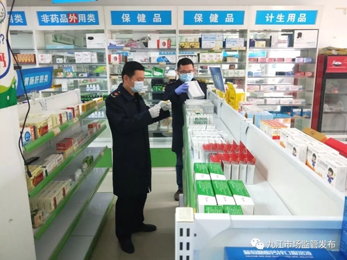 檢查完老菜市場,下一站是新菜市場,中間隔著3家藥店,藥店我們是每天都要去的,不過這么多天一直沒口罩、消毒液賣,感冒藥也沒多少了,明碼標價做得都沒問題,違法廣告也沒有發(fā)現(xiàn)過。今天我們還帶來了一個省防指下發(fā)的緊急通知,要求加強發(fā)熱咳嗽類藥品管理,必須每家藥店通知到位?!澳銈円蚕朕k法進點口罩來啊,群眾都很缺口罩的”,我們經(jīng)常提醒藥店想辦法保障供應,可是一直都很難到位。
