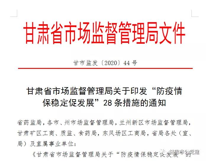 附:甘肅省市場監(jiān)督管理局關于“防疫情保穩(wěn)定促發(fā)展”的28條措施