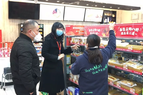 元宵過后區(qū)里就陸續(xù)有一些企業(yè)復(fù)工,今天是華勤電子申請(qǐng)復(fù)工的日子,根據(jù)區(qū)疫情防控指揮部的部署,檢查完集貿(mào)市場(chǎng)后陳若雯又馬不停蹄趕到了位于瑤湖六路的華勤電子企業(yè)食堂進(jìn)行現(xiàn)場(chǎng)防控指導(dǎo),向企業(yè)送達(dá)了《關(guān)于企業(yè)食堂防控新冠肺炎疫情的提醒告誡函》,逐一檢查了每天測(cè)量體溫記錄,清潔消毒記錄、進(jìn)貨臺(tái)賬記錄、加工過程記錄并提醒企業(yè)不生產(chǎn)生冷類等高風(fēng)險(xiǎn)餐點(diǎn),督促企業(yè)推行分餐制,建議食堂采取分流錯(cuò)峰等方式避免面對(duì)面就餐。檢查時(shí)在企業(yè)食堂加工操作間現(xiàn)場(chǎng)抽檢了包括肉類、蛋類、蔬菜、熟食、面食等28個(gè)品種的食品樣品,這樣能盡早發(fā)現(xiàn)食品安全隱患,有效推動(dòng)疫情防控期間企業(yè)食堂有序規(guī)范食品加工。