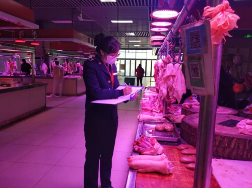 農(nóng)貿(mào)市場(chǎng)的監(jiān)管一直是疫情防控的重中之重,確保禁售活禽和野生動(dòng)物、“肉票”、售賣明碼標(biāo)價(jià)等都是每天必備的執(zhí)法檢查內(nèi)容。為群眾可以采購(gòu)到放心食材,一大早陳若雯和同事們便來到轄區(qū)的各大集貿(mào)市場(chǎng),開始對(duì)農(nóng)副產(chǎn)品、果蔬、肉類等食用農(nóng)產(chǎn)品進(jìn)行檢查和抽樣,平均每天全區(qū)開業(yè)的幾個(gè)集貿(mào)市場(chǎng)要抽36個(gè)樣,在那里一待就是兩個(gè)多小時(shí)。