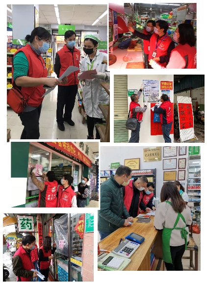 一檔一檔動員,一家一家服務,分片包干、不留死角。在各大農(nóng)貿(mào)市場,先鋒隊員們張貼公告指引,加大宣傳力度,認真了解市場禁售野生動物、限制區(qū)內(nèi)禁售活禽、落實“1110”制度等落實情況,詳細詢問入場人員體溫檢測、人流管控、落實索票索證制度等情況,教育引導經(jīng)營戶加強防疫管理;在各類餐飲單位,他們了解是否嚴格落實禁止堂食要求,指導外賣配送人員做好體溫檢測、佩戴口罩、定時消毒等防范措施;在各零售藥店,他們開展普法宣傳,引導商家守法誠信經(jīng)營,落實實名登記售藥等疫病防控舉措……