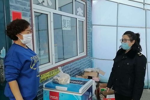 面對(duì)疫情防控期間農(nóng)村地區(qū)外出務(wù)工返鄉(xiāng)人員增多、農(nóng)村冬閑等復(fù)雜因素,王喜雙始終沖鋒在防疫工作的第一線。她不分晝夜一次次的奔走于鄉(xiāng)間,每日對(duì)先鋒鄉(xiāng)鄉(xiāng)直商戶(hù)進(jìn)行實(shí)地檢查的同時(shí),還克服農(nóng)村路況差、商戶(hù)分散等困難,做到所有村級(jí)商戶(hù)全覆蓋。她一次次與商戶(hù)面對(duì)面交流,檢查商品質(zhì)量,詢(xún)問(wèn)價(jià)格,提示消毒防護(hù)、防疫隔離等知識(shí)。記不清有多少個(gè)日夜,她帶領(lǐng)大家奔波在各鄉(xiāng)村大小集市,傾聽(tīng)商戶(hù)的心聲,了解他們的所需所盼。她頭上的霜雪、腳下的泥土成了做通商戶(hù)們思想工作的金鑰匙。為了及時(shí)跟進(jìn)防疫工作,她組建微信群,并采用打電話等方式與轄區(qū)內(nèi)的商戶(hù)負(fù)責(zé)人進(jìn)行溝通交流,及時(shí)推送、告知政府公告、疫情動(dòng)態(tài)等信息,讓大家能夠第一時(shí)間了解該縣防疫的最新措施。