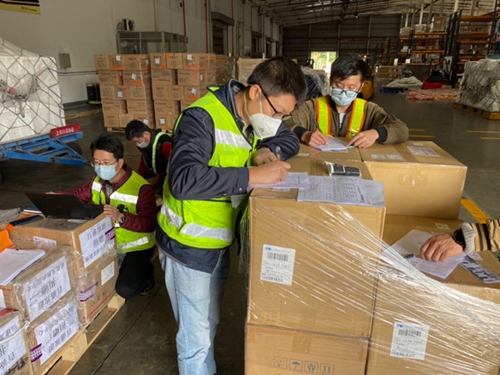 藥械處室業(yè)務骨干、農(nóng)工黨黨員李劍同志臨危受命,作為現(xiàn)場組長之一,帶領能征善戰(zhàn)的“小伙伴”,奔赴元翔航空港貨站、廈門航空貨運中心、廈門機場海關旅檢中心、廈門海關行郵處四個海關場站,為緊急進口的醫(yī)療器械等防疫物資開啟全天候的“綠色通道”。