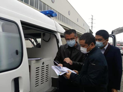 質(zhì)量標準有了,王一峰主任并未止步。他深入生產(chǎn)現(xiàn)場,對裝配產(chǎn)品進行質(zhì)量指導,大到整車安全,細到加工毛刺,為整車產(chǎn)品合標要求建言獻策,和企業(yè)技術人員一同完成下線“負壓式救護車”的性能檢測。經(jīng)過嚴格測試,車輛符合預定標準要求。