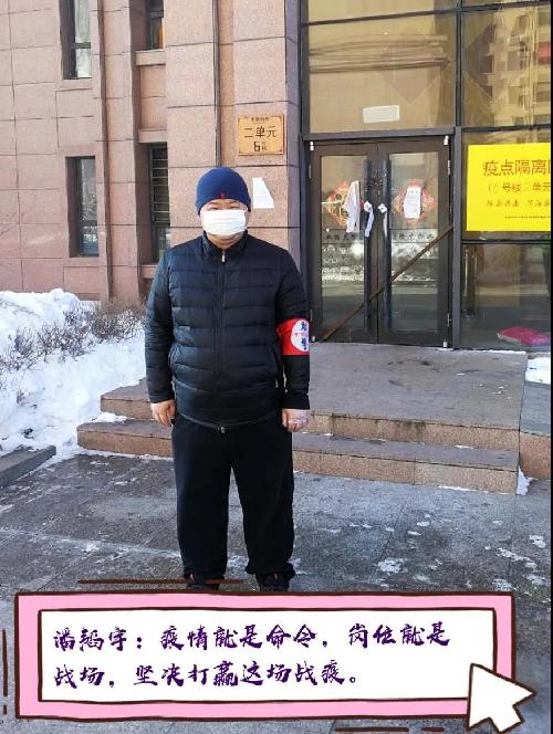 戰(zhàn)“疫”過程中,15名黨員充分發(fā)揮先鋒模范作用,自覺服從社區(qū)統(tǒng)籌管理和安排調(diào)配,承擔(dān)起醫(yī)院及社區(qū)出入口登記、庭院巡邏和隔離人員物資配送等各項服務(wù)任務(wù),全力以赴投入到疫情防控一線。特種食品處姜勇男同志和反不正當(dāng)競爭處王波同志分別在城東社區(qū)和上東社區(qū),他們對責(zé)任單元內(nèi)返哈居家隔離人員執(zhí)行包保責(zé)任制,每天入戶測量登記體溫,為隔離人員送口罩、手套等防護(hù)用品,并為隔離人員配送生活所需物資,及時幫助解決實際困難。省標(biāo)準(zhǔn)化院康馨月同志負(fù)責(zé)在醫(yī)院門診門口站崗值守,面對隨時可能直接接觸到發(fā)熱人員的風(fēng)險毫不退縮,有條不紊地登記來往人員信息,幫助測量體溫、維持院內(nèi)秩序。省標(biāo)準(zhǔn)化院楊大志和呂猛同志在衡山路小區(qū)門口值夜班,在風(fēng)雪嚴(yán)寒中堅持連續(xù)巡查10個小時,嚴(yán)把小區(qū)大門出入關(guān)。省市場監(jiān)管審核查驗中心安慶權(quán)、纖維檢驗中心趙昕宇、省消協(xié)王海峰、省質(zhì)檢院趙平、省標(biāo)準(zhǔn)化院王磊、張辰涵、省局老干部處孫淑華等同志分別負(fù)責(zé)在卡點登記往來車輛和人員信息,工作起來一絲不茍,確保不漏一車一人。標(biāo)準(zhǔn)處潘韜宇、食品抽樣處孫舒廣、質(zhì)檢院閆璐等同志負(fù)責(zé)在值守小區(qū)內(nèi)粘貼與發(fā)放公告通知,確保政策宣傳準(zhǔn)確及時、到人到位。