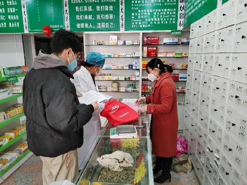 2月3日,鐘中(左一)在藥店檢查