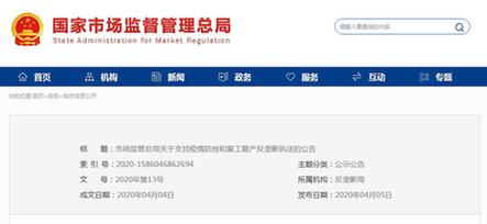 市場(chǎng)監(jiān)管總局關(guān)于支持疫情防控和復(fù)工復(fù)產(chǎn)反壟斷執(zhí)法的公告