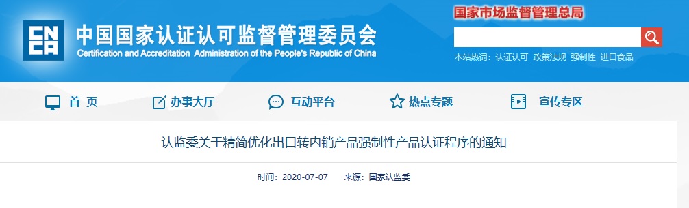 認(rèn)監(jiān)委關(guān)于精簡優(yōu)化出口轉(zhuǎn)內(nèi)銷產(chǎn)品