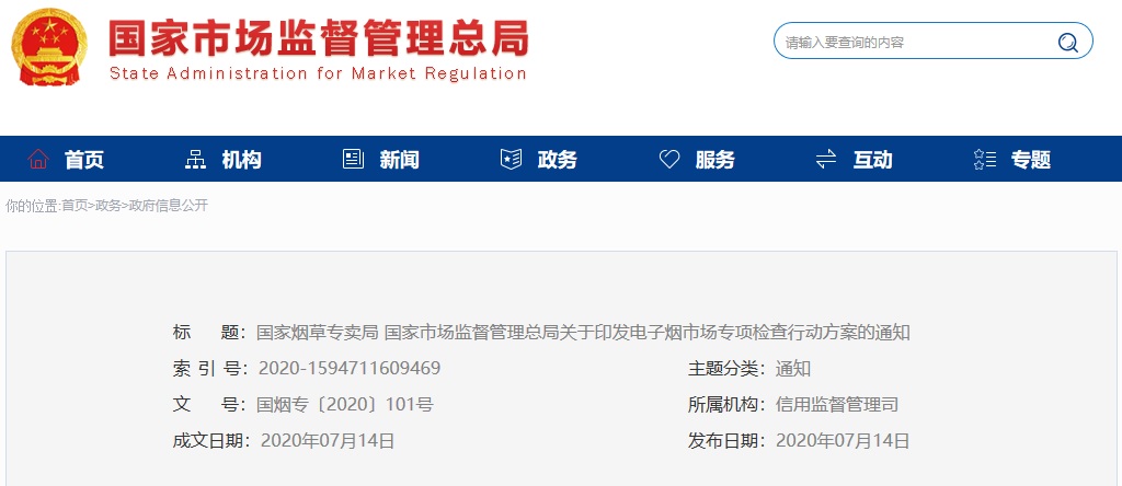 關(guān)于印發(fā)電子煙市場(chǎng)專項(xiàng)檢查行動(dòng)方案的通知