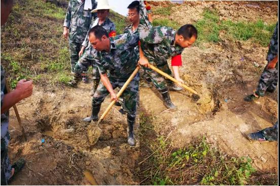 17日下午,第三突擊組的李勤和萬凌鋒在巡堤中突然發(fā)現(xiàn)了又一處管涌險情,警覺的他們立即向指揮部報告,在專家的指導(dǎo)下,他倆與當(dāng)?shù)厝罕娨坏劳诳犹盥?,及時地將險情排除。李勤說:“能及時發(fā)現(xiàn)這樣的險情,就是我們在這里的意義所在,隱患排除了,我們再苦再累也值得。”