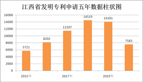 一、江西省近5年專利申請授權(quán)數(shù)據(jù)統(tǒng)計柱狀圖