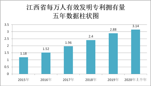 中國質(zhì)量新聞網(wǎng)訊 2020年4月,江西省每萬人發(fā)明專利擁有量達3.01件,提前8個月完成中共江西省委辦公廳、江西省人民政府辦公廳印發(fā)的《江西省推進創(chuàng)新型省份建設(shè)行動方案(2018-2020年)》中“每萬人發(fā)明專利擁有量達到3件”目標(biāo)。截至6月30日,江西每萬人發(fā)明專利擁有量為3.14件,同比增加0.49件。