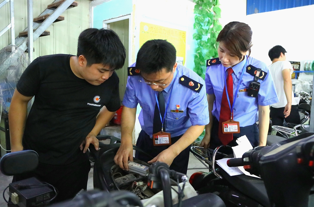 粟啟明表示,改裝后的電動(dòng)自行車改變了車輛參數(shù),特別是電池的加裝、交換器的改裝導(dǎo)致車輛動(dòng)力與車輛出廠設(shè)計(jì)參數(shù)不匹配,行駛上路有一定的安全隱患,消費(fèi)者切莫駕駛這類車輛?!赌蠈幨须妱?dòng)自行車管理?xiàng)l例》9月1日實(shí)施后,市場(chǎng)監(jiān)管部門將對(duì)全市的電動(dòng)自行車銷售點(diǎn)、維修點(diǎn)進(jìn)行全面檢查,進(jìn)一步加大電動(dòng)自行車銷售、維修的執(zhí)法力度,嚴(yán)厲查處超標(biāo)車、改裝車行為,嚴(yán)格規(guī)范電動(dòng)自行車和配件市場(chǎng)秩序,保障公眾生命和財(cái)產(chǎn)安全。