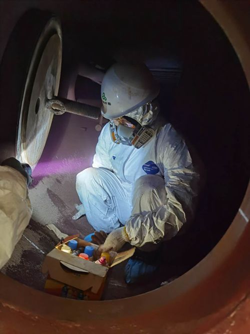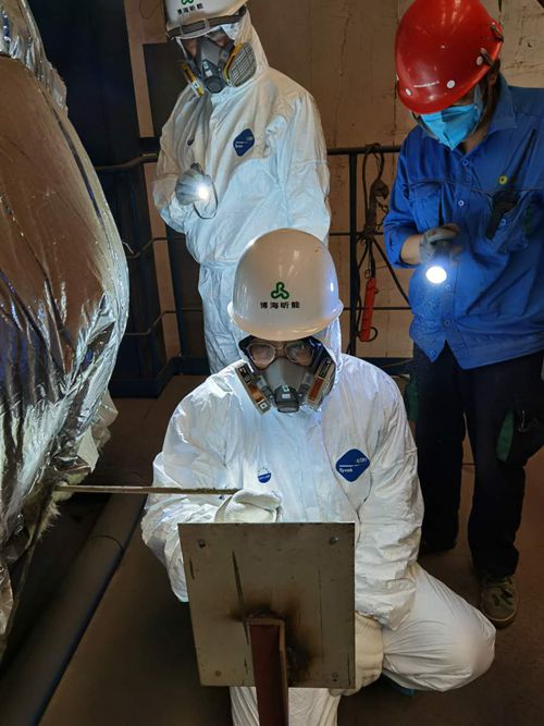 為了保障檢驗(yàn)任務(wù)順利完成,并保障檢驗(yàn)人員人身安全,特檢所組織精干力量會(huì)同檢驗(yàn)小組,提前一周深入檢驗(yàn)現(xiàn)場進(jìn)行實(shí)地考察,在咨詢中國特種設(shè)備檢驗(yàn)研究院等多家具有檢驗(yàn)經(jīng)驗(yàn)的檢驗(yàn)機(jī)構(gòu)后,經(jīng)多次研究論證,量身制定了詳細(xì)周密的檢驗(yàn)方案和應(yīng)急處置預(yù)案,確定了檢驗(yàn)重點(diǎn)。檢驗(yàn)小組利用電站鍋爐煙道檢修的短暫窗口期,身著全套防護(hù)裝備,進(jìn)入密閉不透風(fēng)、悶熱高溫的爐內(nèi),忍受著難以形容的刺激氣味和因鼓風(fēng)機(jī)運(yùn)行而產(chǎn)生的巨大噪音,在漂浮著大量二噁英等劇毒致癌物質(zhì)的極端檢驗(yàn)環(huán)境中經(jīng)過4個(gè)小時(shí)連續(xù)奮戰(zhàn),順利完成檢驗(yàn)任務(wù)。