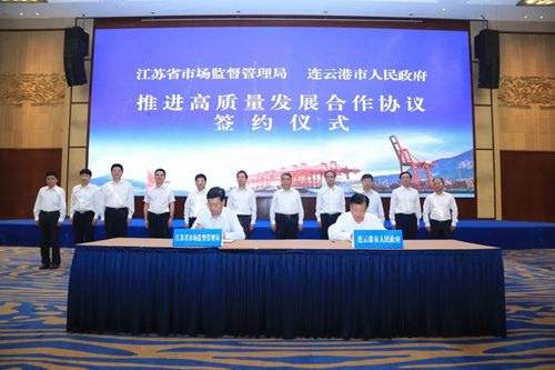 中國質(zhì)量新聞網(wǎng)訊 為貫徹落實(shí)江蘇省委、省政府高質(zhì)量發(fā)展部署要求,充分發(fā)揮市場監(jiān)管職能作用助力區(qū)域經(jīng)濟(jì)高質(zhì)量發(fā)展,9月9日上午,江蘇省市場監(jiān)管局、連云港市政府在連云港舉行推進(jìn)高質(zhì)量發(fā)展合作協(xié)議簽約儀式。江蘇省市場監(jiān)管局局長、黨組書記朱勤虎,連云港市市委書記項(xiàng)雪龍、市長方偉參加簽約儀式。
