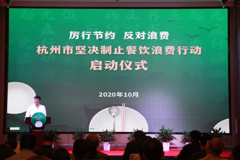 會上,市市場監(jiān)管局局長范建軍宣讀了杭州市委書記周江勇的批示,副局長古濤解讀了省政府堅決制止餐飲浪費(fèi)行動方案,發(fā)布杭州市六大行動方案;上城區(qū)政府、餐飲協(xié)會、杭州飲服集體就厲行節(jié)約、制止餐飲浪費(fèi)作了倡議發(fā)言,積極響應(yīng)并號召社會各界參與到制止餐飲浪費(fèi)行動中來。