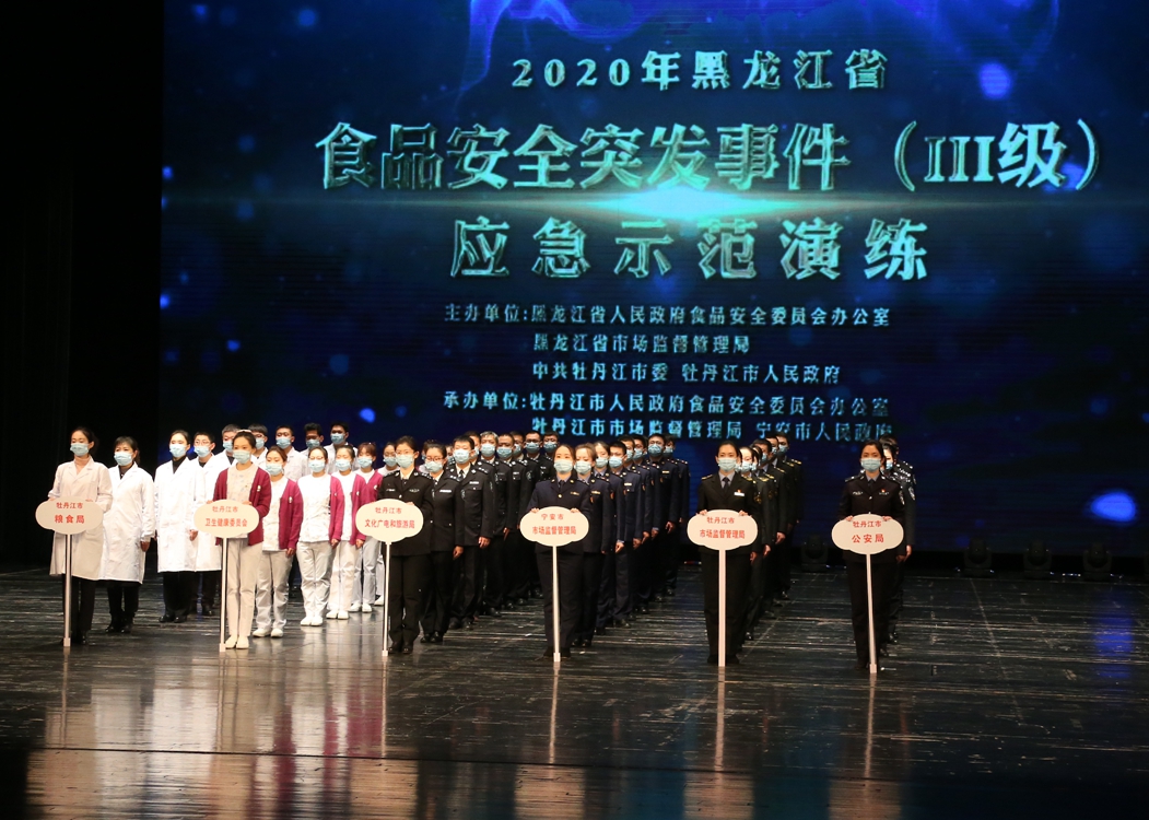 中國質(zhì)量新聞網(wǎng)訊 為積極應(yīng)對和化解食品安全風(fēng)險挑戰(zhàn),打好防范和抵御食品安全風(fēng)險主動戰(zhàn),不斷提升食品安全突發(fā)事件應(yīng)急處置能力,11月10日,黑龍江省食安辦、省市場監(jiān)管局與牡丹江市委市政府主辦,牡丹江市食安辦、市市場監(jiān)管局和寧安市政府承辦的2020年黑龍江省食品安全突發(fā)事件(Ⅲ級)應(yīng)急示范演練在牡丹江大劇院舉行。