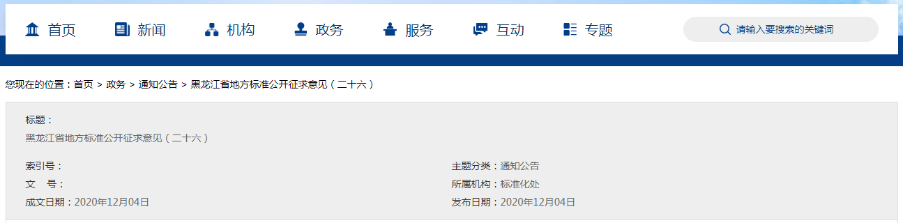 黑龍江省地方標(biāo)準(zhǔn)公開(kāi)征求意見(jiàn)(二十六)