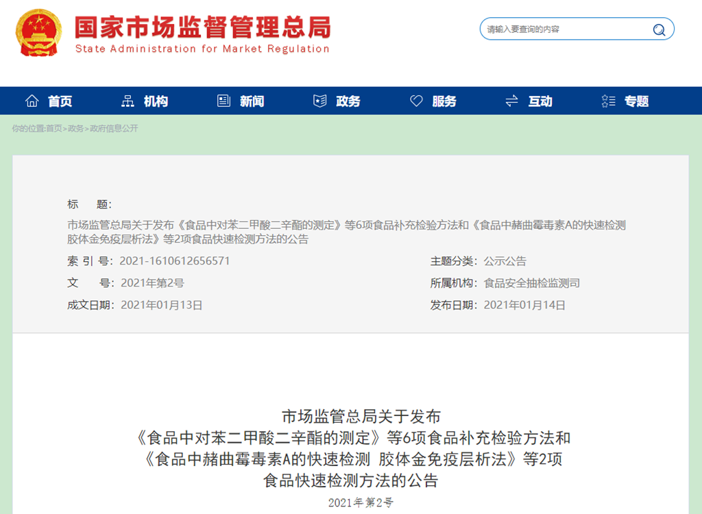 方法文本可在市場監(jiān)管總局食品補充檢驗方法數據庫(http://www.samr.gov.cn/spcjs/bcjyff/)和食品快速檢測方法數據庫(http://www.samr.gov.cn/spcjs/ksjcff/)中查詢和下載。