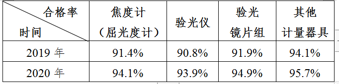 2019年、2020年眼鏡制配場所計(jì)量器具合格率對比