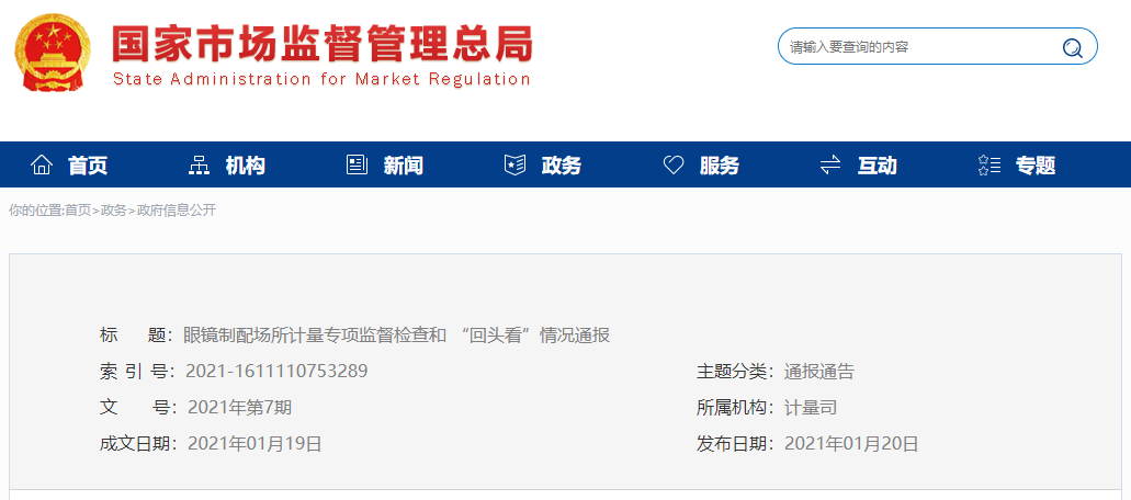 為深入貫徹習(xí)近平總書記關(guān)于綜合防控兒童青少年近視工作有關(guān)重要批示精神,積極落實(shí)教育部、國家衛(wèi)生健康委、市場監(jiān)管總局等八部門聯(lián)合印發(fā)的《綜合防控兒童青少年近視實(shí)施方案》,市場監(jiān)管總局于2020年5月至10月在全國范圍內(nèi)開展了眼鏡制配場所計(jì)量專項(xiàng)監(jiān)督檢查和“回頭看”?,F(xiàn)將有關(guān)情況通報(bào)如下: