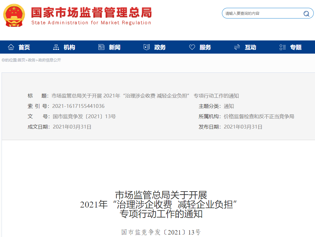 2021年“治理涉企收費(fèi) 減輕企業(yè)負(fù)擔(dān)”