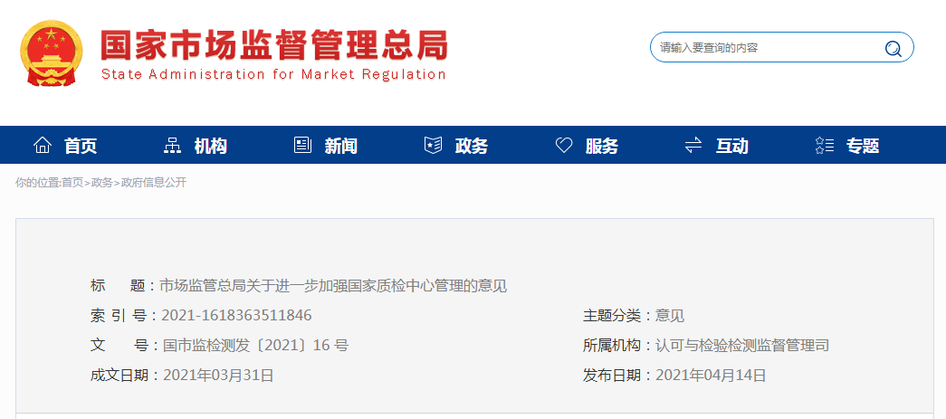 市場監(jiān)管總局關(guān)于進(jìn)一步加強(qiáng)國家質(zhì)檢中心管理的意見