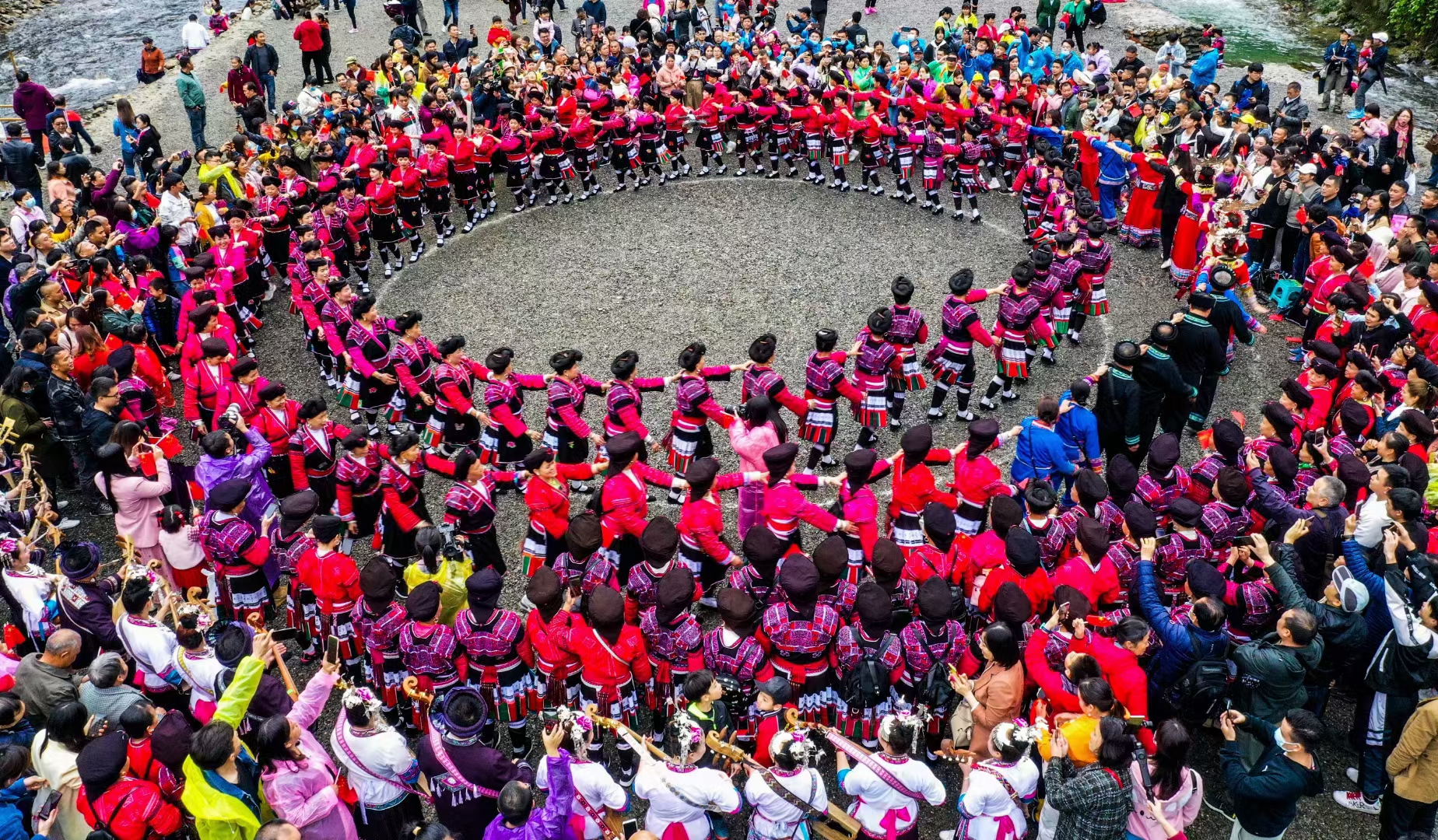 廣西一年一度壯族“三月三”佳節(jié),五湖四海的游客慕名來(lái)到龍勝縣,同當(dāng)?shù)厣贁?shù)民族歡聚一堂?!懊绗幎眽褲h”五個(gè)民族團(tuán)結(jié)一心,載歌載舞,用優(yōu)美的舞姿、動(dòng)聽(tīng)的山歌、正宗的米酒熱情歡迎八方游客的到來(lái)。