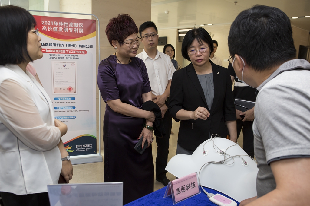 惠州市市場監(jiān)督管理局(知識產(chǎn)權(quán)局)三級調(diào)研員麥麗芳和仲愷高新區(qū)管委會副主任湯俊參觀專利成果展