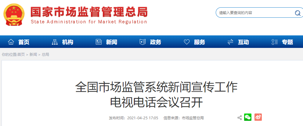 4月25日,全國市場監(jiān)管系統(tǒng)新聞宣傳工作電視電話會(huì)議召開。會(huì)議總結(jié)2020年市場監(jiān)管新聞宣傳工作,深入分析形勢任務(wù),部署做好2021年工作。市場監(jiān)管總局黨組成員、副局長(正部長級)秦宜智出席會(huì)議并講話。