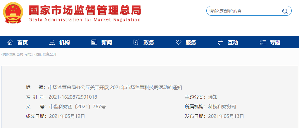 根據(jù)《科技部 中央宣傳部 中國科協(xié)關于舉辦2021年全國科技活動周的通知》(國科發(fā)智〔2021〕77號),2021年全國科技活動周定于5月22日—28日舉行。為充分展示百年黨史中市場監(jiān)管科技工作取得的重要成就及創(chuàng)新成果,深入普及市場監(jiān)管科技知識,推動市場監(jiān)管科技成果和科普活動惠及于民,總局將同期開展2021年市場監(jiān)管科技周活動。現(xiàn)將有關事項通知如下:
