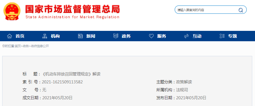 市場監(jiān)管總局負(fù)責(zé)建立機(jī)動(dòng)車排放召回信息系統(tǒng)和監(jiān)督管理平臺(tái),與生態(tài)環(huán)境部建立信息共享機(jī)制。
