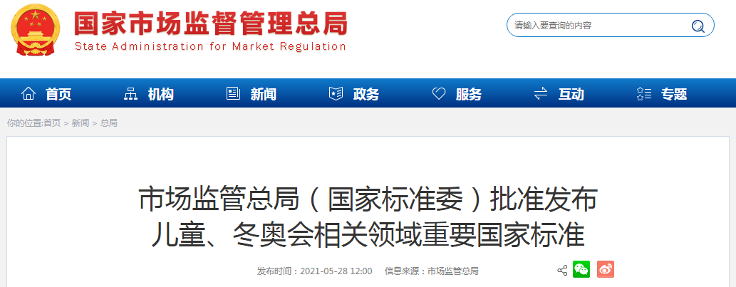 “六一”兒童節(jié)將至,又正值籌備冬奧會的關鍵時期,近日,市場監(jiān)管總局(國家標準委)集中發(fā)布一批重要國家標準。本次發(fā)布的國家標準,緊緊圍繞兒童、冬奧會相關領域,發(fā)揮“標準為民”“標準護苗”的作用,助力冬奧成功舉辦。