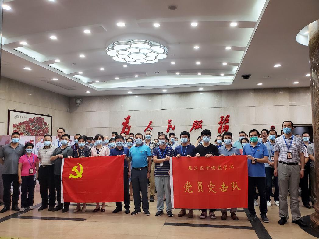 荔灣區(qū)市場監(jiān)管局組成疫情防控黨員突擊隊,在黨旗下宣誓