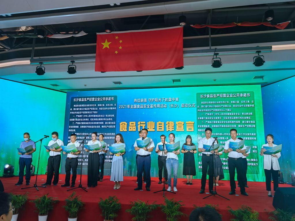 高橋大市場(chǎng)股份有限公司、湖南快樂(lè)一號(hào)貿(mào)易有限公司等20家食品生產(chǎn)經(jīng)營(yíng)企業(yè)代表公開(kāi)作出切實(shí)履行企業(yè)主體責(zé)任的放心承諾?,F(xiàn)場(chǎng)推介了食品安全志愿者和外賣騎手“吹哨人”經(jīng)驗(yàn)做法,聘請(qǐng)印遇龍、王墨泉、李麗、汪涵等知名人士擔(dān)任長(zhǎng)沙食品安全形象大使。