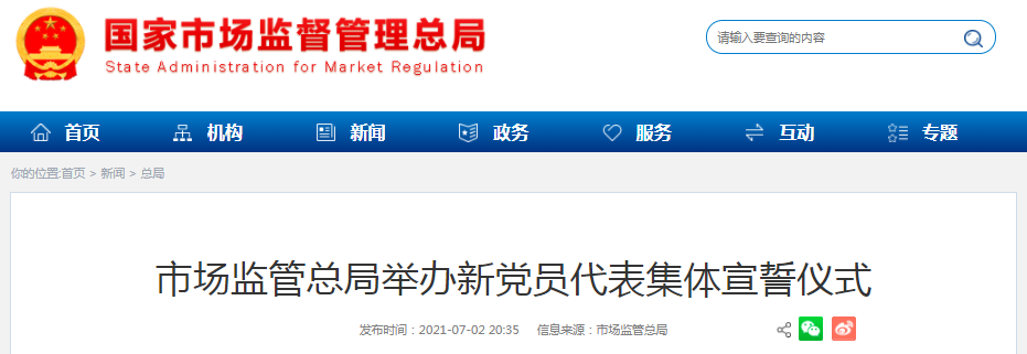 市場監(jiān)管總局舉辦新黨員代表集體宣誓儀式