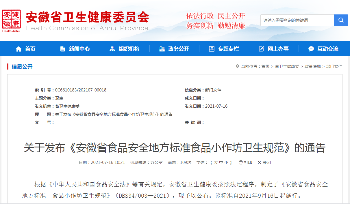 安徽省衛(wèi)生健康委7月16日發(fā)布消息稱,日前,安徽省衛(wèi)生健康委、安徽省市場(chǎng)監(jiān)督管理局聯(lián)合發(fā)布《安徽省食品安全地方標(biāo)準(zhǔn) 食品小作坊衛(wèi)生規(guī)范》(詳見(jiàn)附件)。根據(jù)《規(guī)范》要求,食品小作坊不應(yīng)生產(chǎn)加工食品添加劑;乳制品、罐頭制品、飲料等食品;保健食品、特殊醫(yī)學(xué)用途配方食品、嬰幼兒配方食品;采用非固態(tài)法發(fā)酵工藝生產(chǎn)的白酒;國(guó)家、省和設(shè)區(qū)的市禁止生產(chǎn)加工的其他食品。該標(biāo)準(zhǔn)自2021年9月16日起施行。